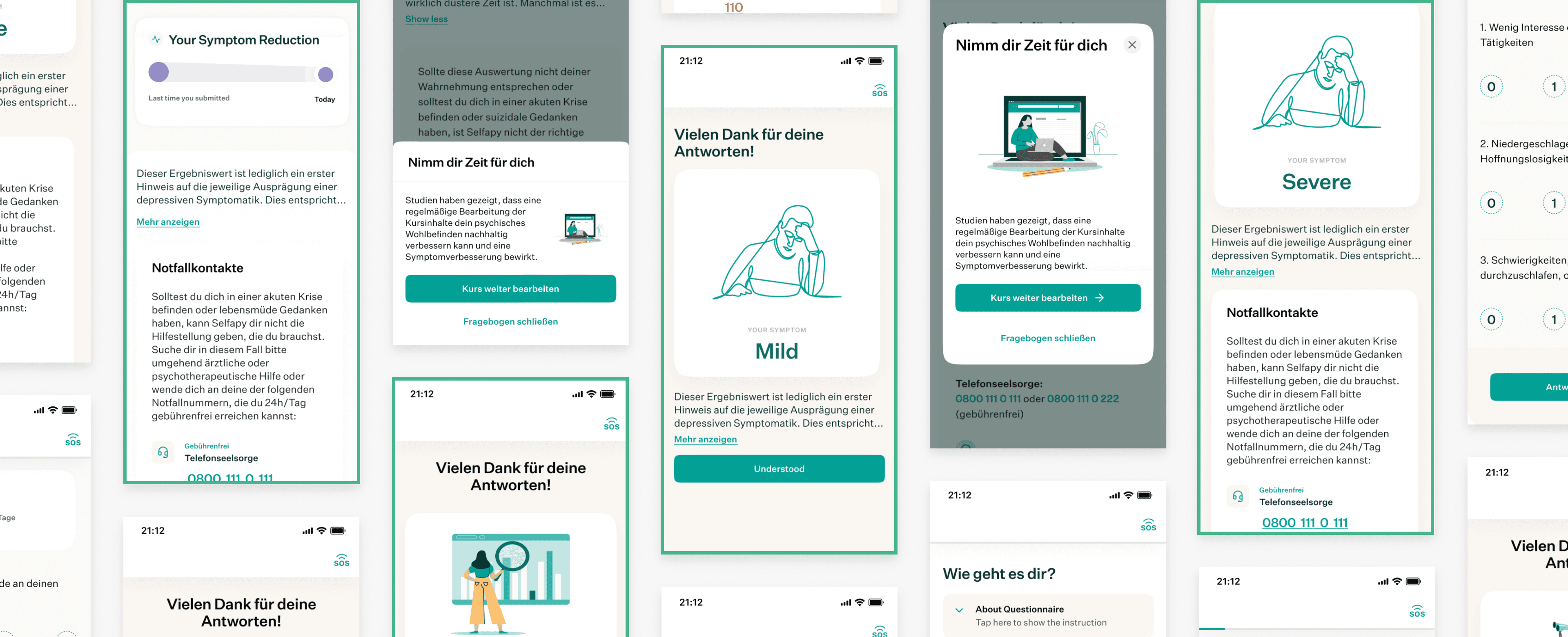 To avoid risk of triggering patients, we opted out displaying direct scores or diagnoses. Collaborating with content writers, we used neutral wordings and designed dynamic result screens tailored to each user’s symptom inputs.